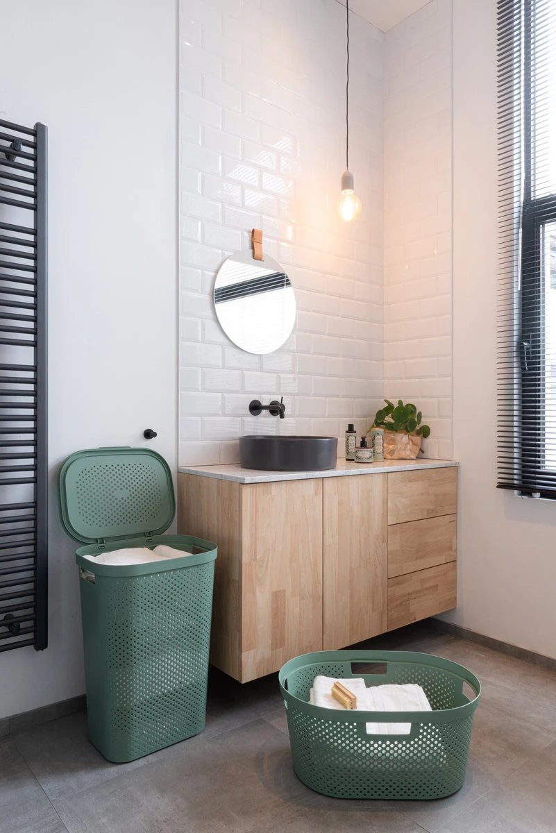 - Curver Infinity Dots Wasmand met deksel – 60L – 2 stuks – Groen – Recycled Kunststof