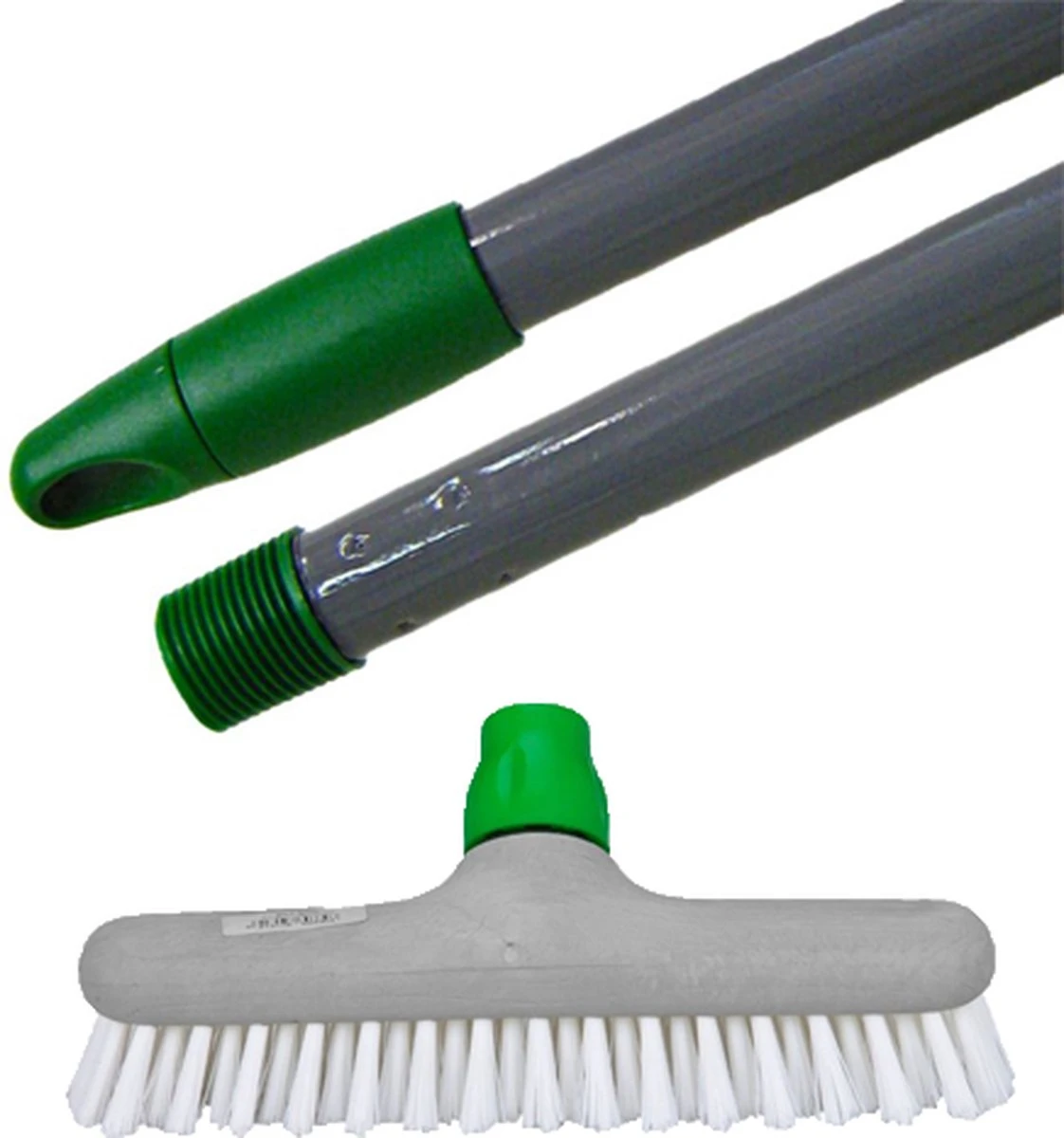 Stevige steel met rubber sleeve en duits schroefdraad voor borstelwerk: stevig genoeg voor een straatbezem of luiwagen, duurzame epoxy coating, rubber sleeve en goed passend duits schroefdraad voor de aansluiting van een bezemhoofd.