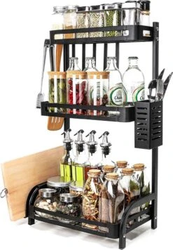 Het kruidenrek is een absolute blikvanger. Het keukenrek heeft drie etages en voldoende ruimte om een groot aantal kruidenpotjes op te slaan. Daarnaast is het keukenrek ook ontzettend praktisch, doordat het kruidenrek water- en vuilafstotend is. Olie of kruidenresten worden makkelijk verwijderd met een vochtig doekje. Hou je keuken opgeruimd en bestel vandaag nog dit staande design keukenrek!